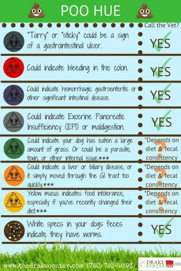 ***Poop color can also be representative of the diet (i.e a dog who eats a lot of pumpkin or carrots may have orange colored stools that are “normal”. The consistency of the BM should be evaluated to determine if it’s “normal” or “abnormal”.